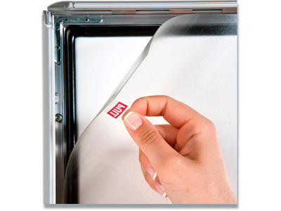 De fleste skifterammer, som vi forhandler hos Kontor Syd, har en magnetisk lukning – også kaldet Snap Frame. Det betyder, at du nemt kan udskifte et billede, når du er blevet træt af at se på det. Hvis ikke det har en Snap Frame lukning, så har det en Slide-in Frame eller andre smarte måder at få udskiftet billedet på. Sagt på en anden måde, så kan skifterammer pryde kontoret med nye billeder hver uge, mens et maleri forbliver det samme. Derfor synes vi hos Kontor Syd, at det er en rigtig god idé at købe skifterammer.