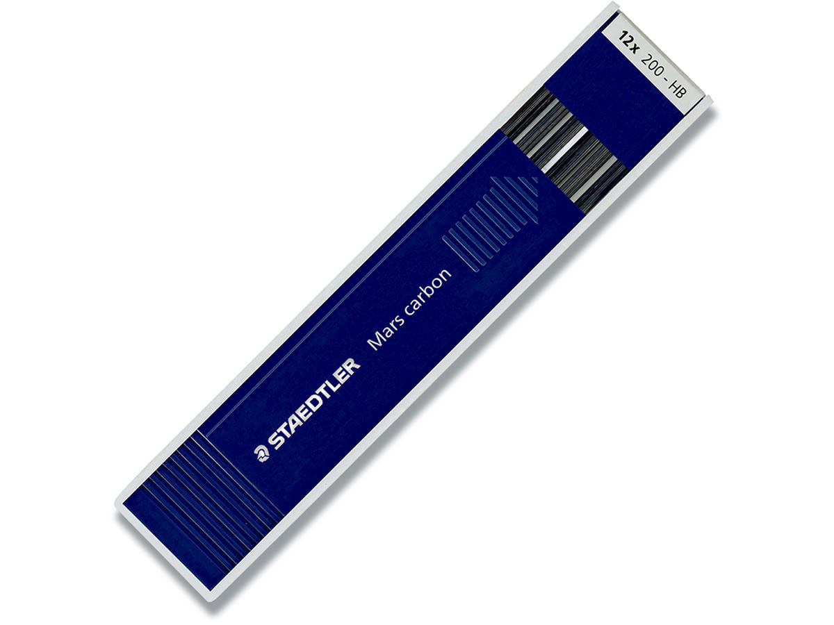 Mars® carbon 200 mine - passer til 2 mm stiftblyanter, f.eks. Mars 780 C. Leveres i praktisk og stabilt etui. Længde 130 mm. 12 miner pr. etui.