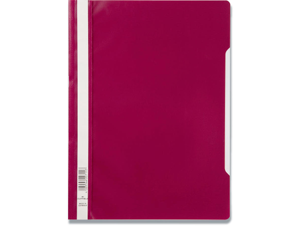 Clear View Folder. A4 PP kvalitetsmappen fra DURABLE er et alsidigt valg til alt fra rapporter og citater til noter og dokumentlagring. Vælg mellem en lang række moderne farver og opmærkningsmuligheder. Clear View Folder tilbudsmappe med gennemsigtigt frontside og farvet bagside. Opbevaring af udstansede ark via arkiveringsmekanisme. En udskæring i omslaget gør det muligt at dreje siderne. Filer kan ses tydeligt ved hjælp af etikettering i fuld længde. Kan eftermonteres med FILING ACCESSORY art.nr. DU2996 til arkivering i ringbind m.m.. Miljøvenlig af materialet polypropylen.