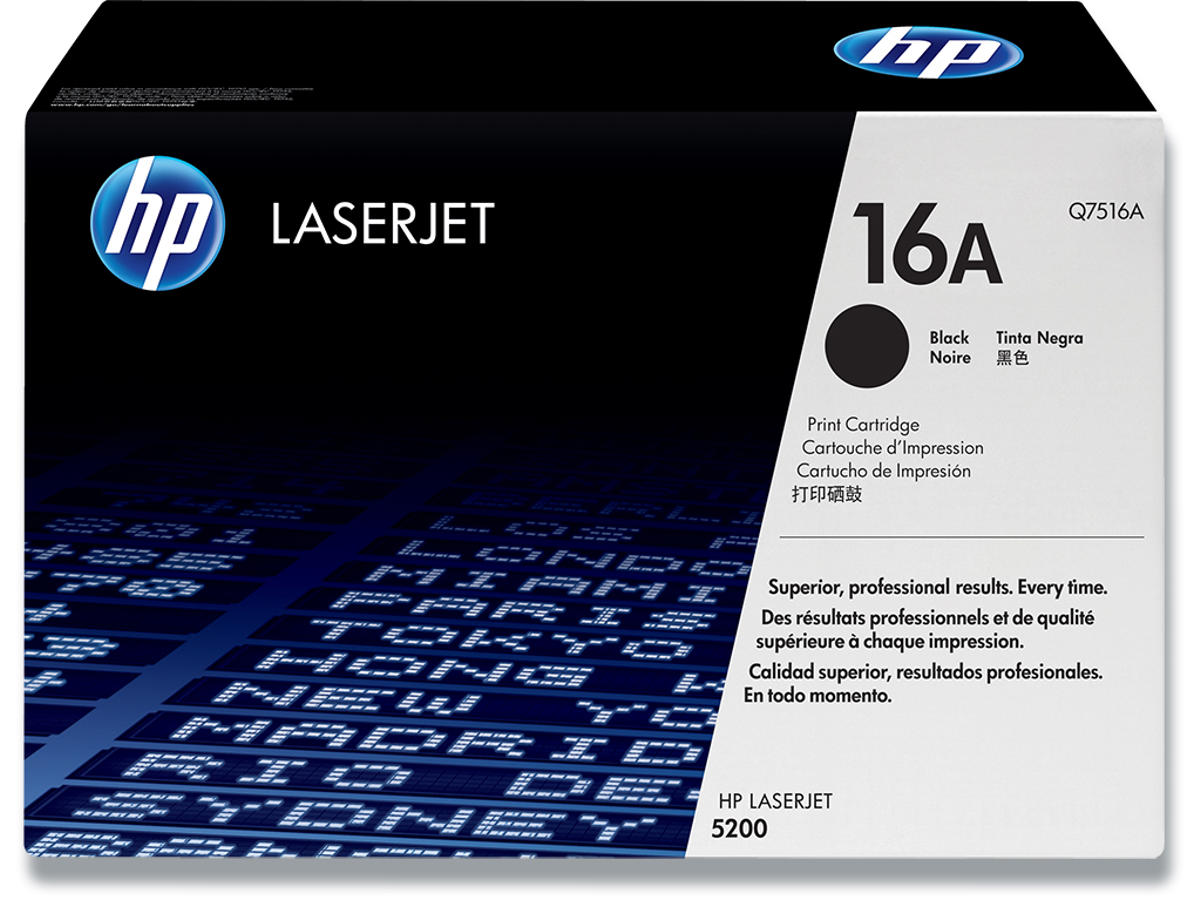 Toner, 16A, Black-sort, 12.000 sider, HP Q7516A