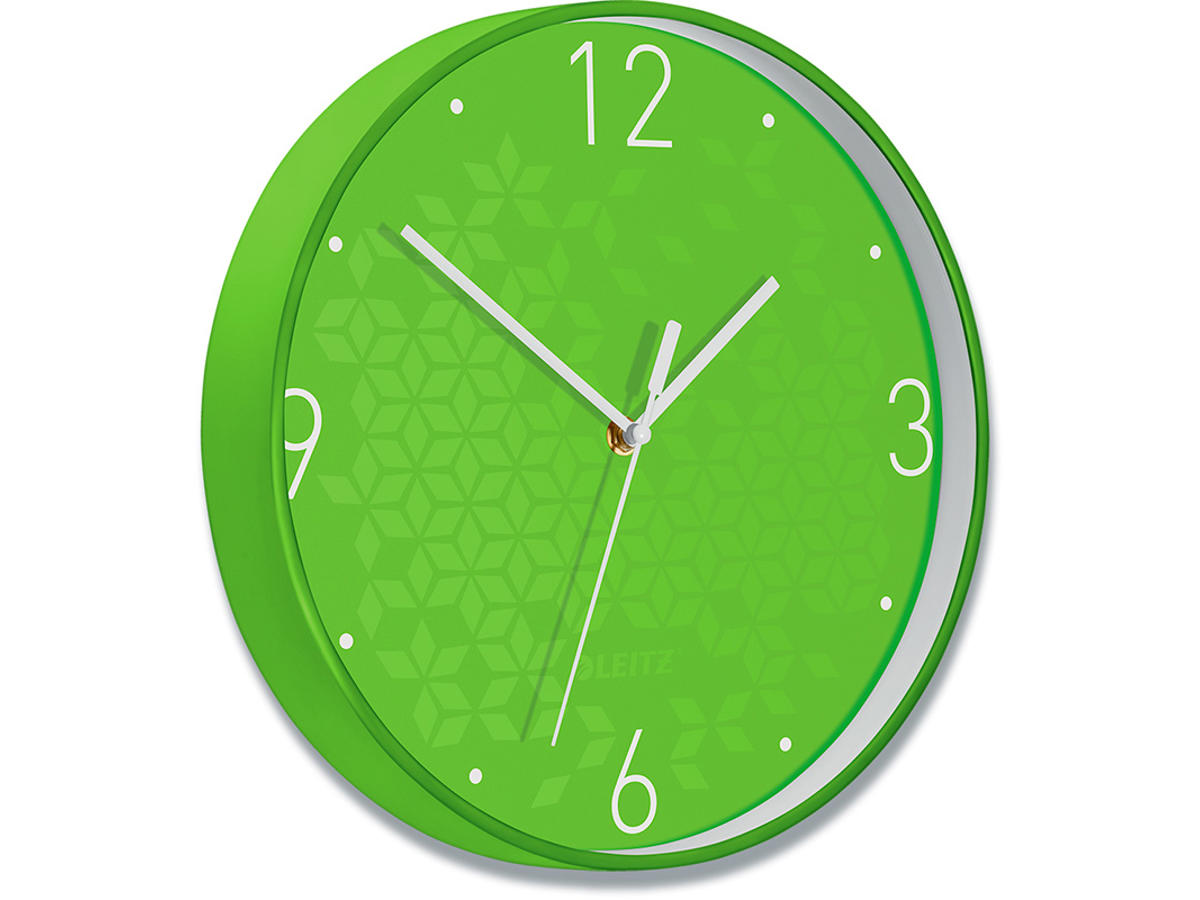 Stille vægur i iøjnefaldende WOW farver. 29 cm i diameter med en tofarvet ramme lavet i robust plastik kombineret med et glas front. Man kan ikke høre uret tikke, hvilket gør det ideelt til kontorer, studieområder eller i soveværelset. En del af Leitz WOW - et bredt produktsortiment til organisering på kontoret og på farten i iøjnefaldende farver med et sofistikeret design, som lader din personlighed skinne igennem.