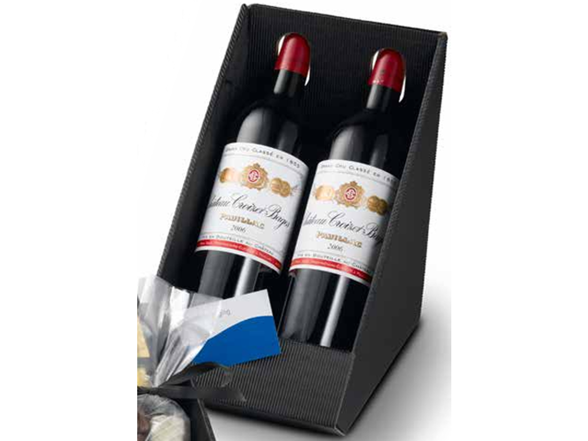 Flaskerne skal stilles på skrå i kassen. Sælges uden indhold.