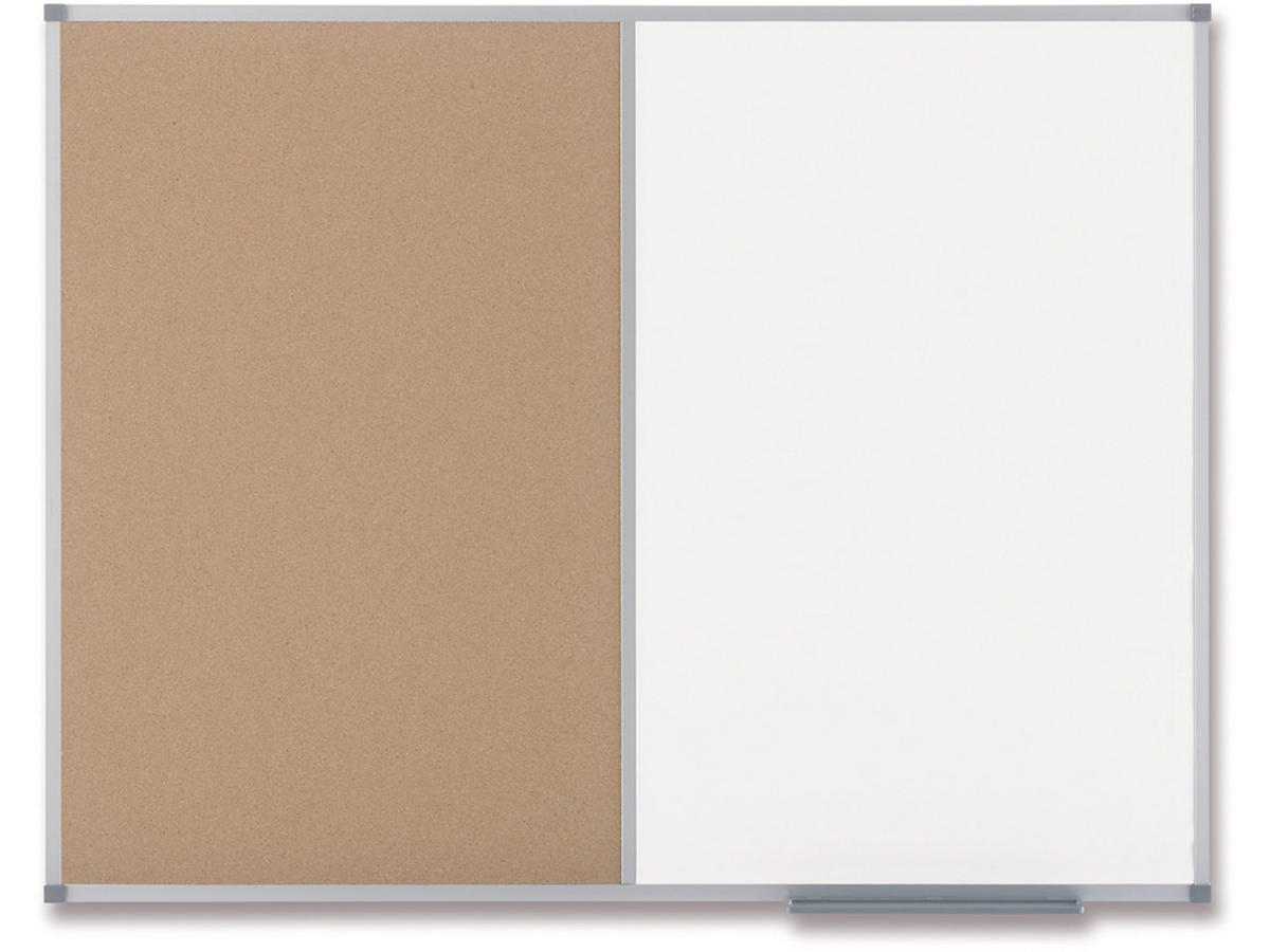 Klassisk kombinations-opslagstavle i kork/malet stål, omkranset af en højkvalitets, anodiseret aluminiumsramme og selvhelende korkoverflade til at sætte og vise dine beskeder på. Hjørne montering med monteringssæt inkluderet. Størrelse: 900x600mm