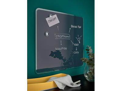 • Skriv eller sæt dine noter direkte på den magnetiske, glas whiteboardtavle-overflade