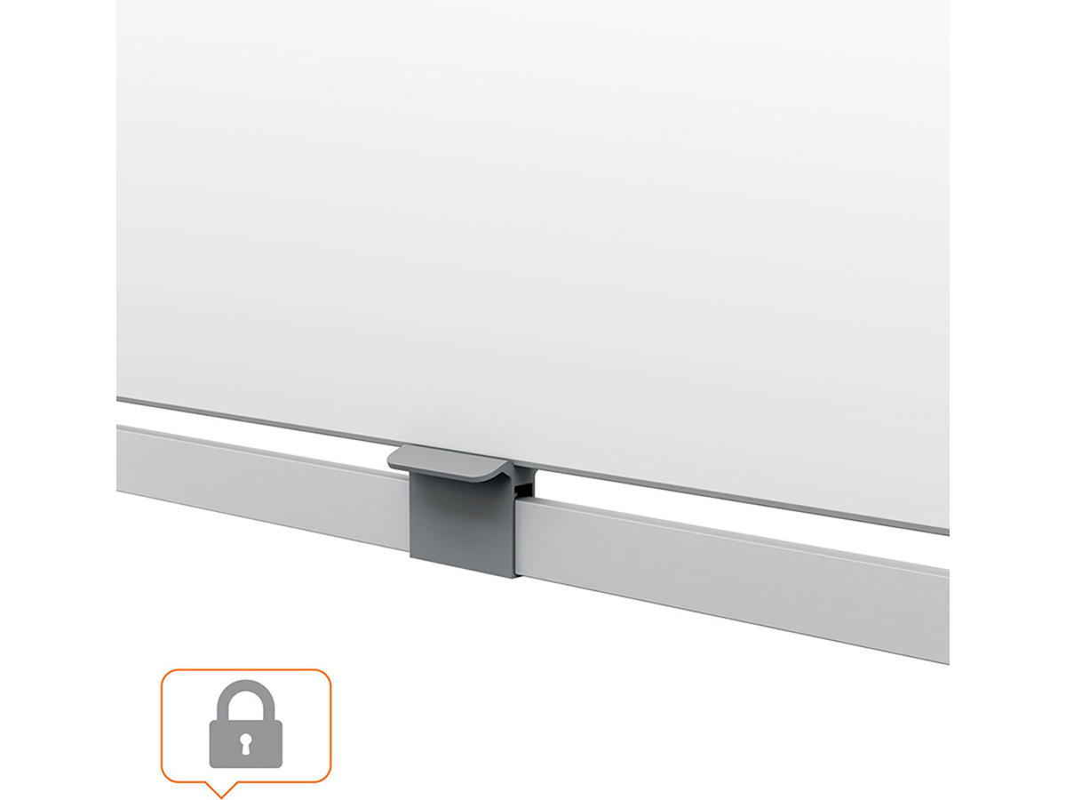 - Magnetisk whiteboardtavle i stål med 360 graders vandret drejning og innovativ central låsefunktion